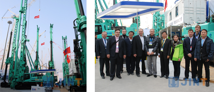 本屆展會,上海金泰展出的設(shè)備有:SH系列大三角結(jié)構(gòu)旋挖鉆機,SD系列四連桿機構(gòu)旋挖鉆機,開挖深度達到100米的SG60型地連墻抓斗,世界首創(chuàng)、鉆桿可伸縮、動力頭中置的M系列三軸鉆機以及使用CSM工法、適用于復(fù)雜地層C80液壓銑削攪拌機。 豐富多樣的產(chǎn)品吸引了100多位外商參觀金泰展位,他們分別來自俄羅斯、印度、巴西、土耳其、美國、澳大利亞、越南、埃及等國家。參觀過程中,世界領(lǐng)先的技術(shù)、完美的品質(zhì)及有競爭力的價格激起了外國客戶強烈的購買意向,甚至還有一些外國客戶有意向作金泰產(chǎn)品在本國的經(jīng)銷商。