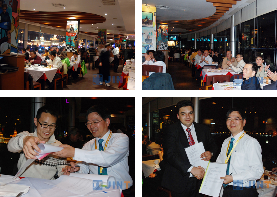 展會期間,上海金泰工程機械公司為答謝廣大國外客戶長期以來的支持,邀請國外客戶參加在外灘天水戀意大利餐廳舉辦的晚宴,餐廳晚宴上均是金泰的老客戶,借寶馬展這個東風(fēng),齊聚一堂,共同見證金泰公司的輝煌歷程。伴著和諧的音樂和璀璨的燈光,晚會達到高潮。當(dāng)時有兩國客戶分別和金泰簽訂了合作意向書,為晚會增添光彩。