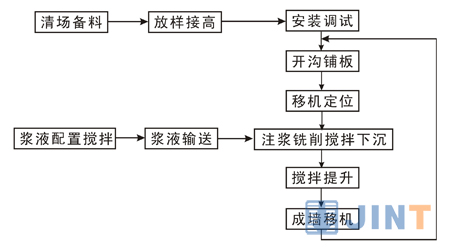 我公司自主研發(fā)的C60液壓銑削攪拌鉆機(jī),吸收了國外先進(jìn)技術(shù)和綜合國內(nèi)十多年來的地下連續(xù)墻施工經(jīng)驗(yàn),結(jié)合雙輪銑和多軸鉆機(jī)的的優(yōu)點(diǎn),集銑削和攪拌為一體的新型設(shè)備,并采用國際先進(jìn)的CSM工法施工。CSM工法主要分為下鉆成槽、上提成墻兩部分,有施工快捷、施工噪音小、成墻質(zhì)量好、搭接面積少、適應(yīng)各種復(fù)雜地層等優(yōu)點(diǎn)。