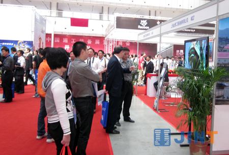 本次施工裝備展覽洽談商會,金泰機械展位坐落A館36、37號標展。淡淡幽香的百合花、整齊的質(zhì)料架、柔軟的沙發(fā)、錚亮的茶幾……,金泰風格的布置,使得原本不起眼的展位,成為標展區(qū)最耀眼的“明星”。
